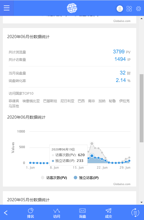 该企业与全球搜有着多年的合作,5月精准询盘达到126封,6月94封